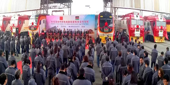 2016年12月16日,中車戚墅堰公司56臺出口肯尼亞內(nèi)燃機(jī)車項(xiàng)目首批12臺交付??夏醽嗚F路公司、中國路橋工程有限責(zé)任公司、中車股份公司相關(guān)人士,共同為交付機(jī)車剪彩。